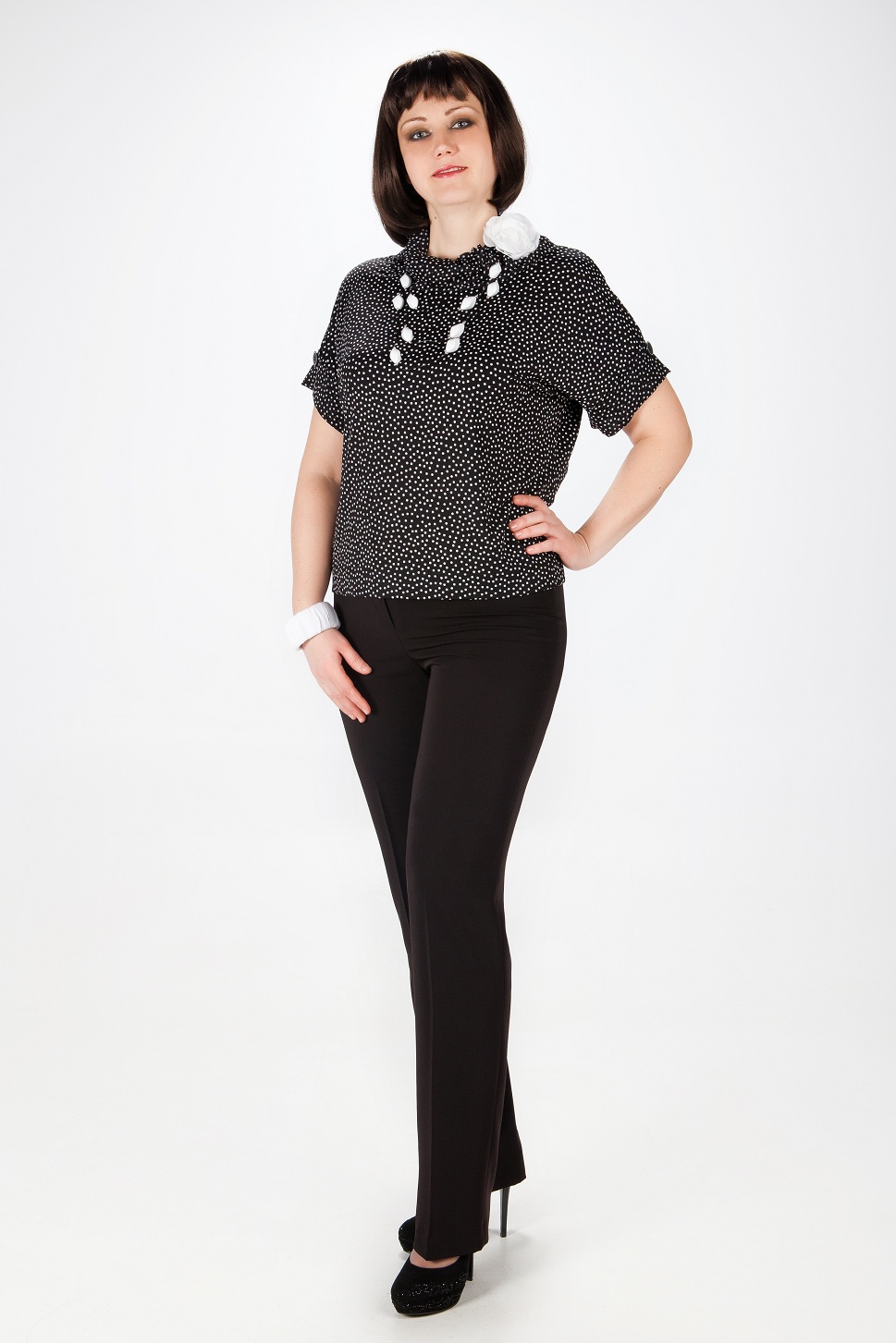 Брюки женские на поясе с плотным объёмом на уровне бедра, заужены к низу, талия увеличена.