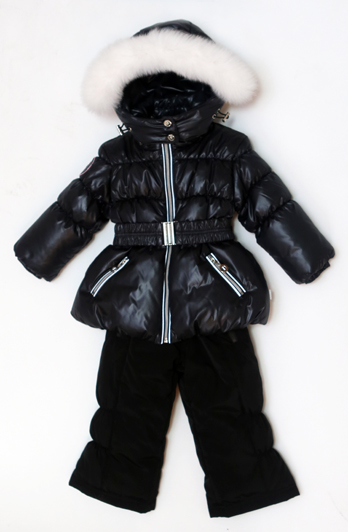 Куртка - Ткань верха: 100% п/э "Лаке" Утеплитель: 80% пух, 20% перо Ткань подклада: 100% п/э Опушка: песец "Шадо" (окрашен в цвет основной ткани) Полукомбинезон - Ткань верха: 63% нейлон, 37% п/э Ткань подклада: 100% п/э Утеплитель: 100% п/э