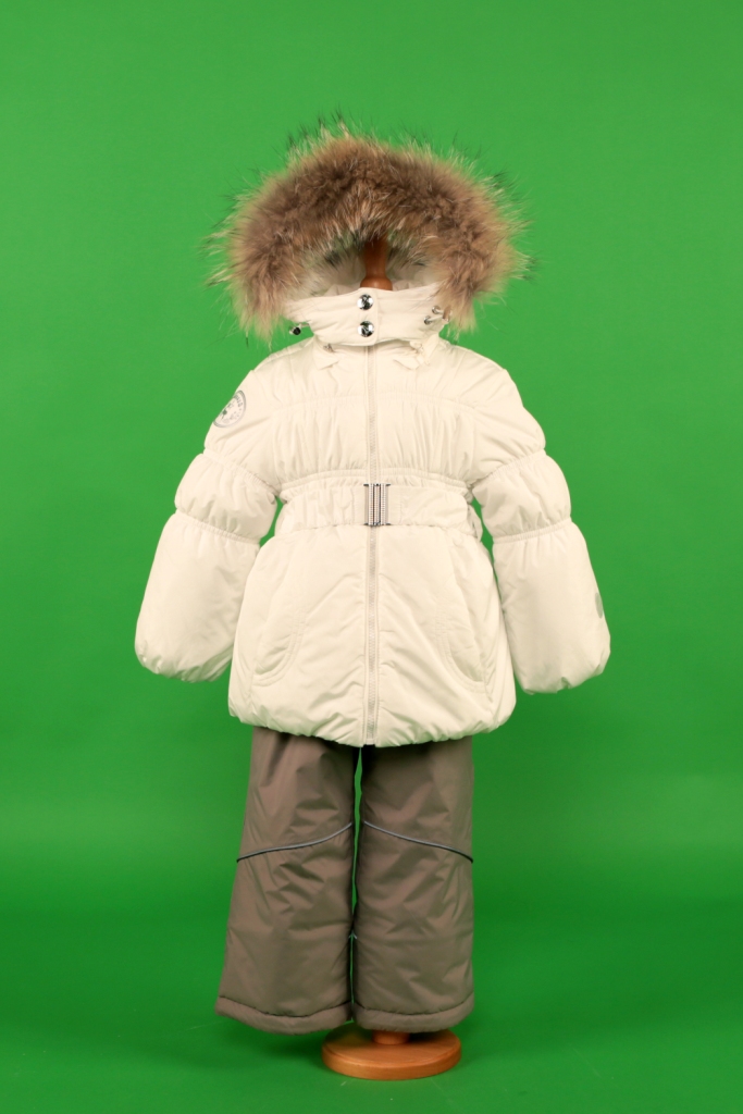 Куртка: Ткань верха: 100% нейлон. Подкладка: 100% п/э. Утеплитель: 100% п/э. Съемная подстежка: 80% гусиный пух, 20% перо. Опушка: финский енот. П/комбинезон: Ткань верха: 100% нейлон. Подкладка: 100% п/э. Утеплитель: 100% п/э