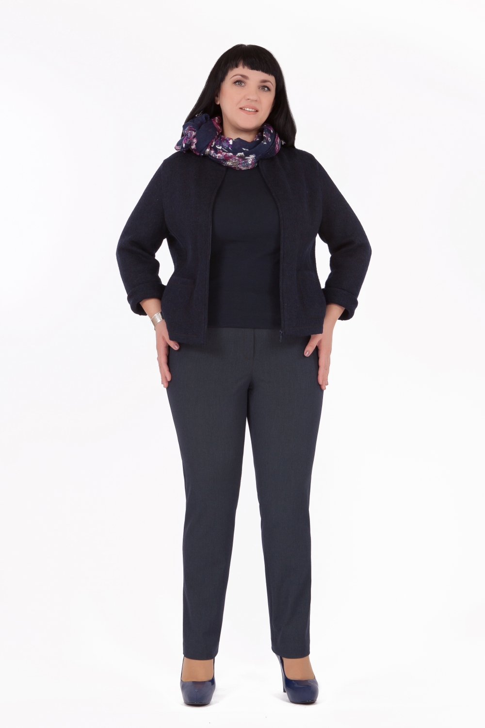 Женские брюки на поясе по типу «джинсы», талия увеличена, заужены книзу.