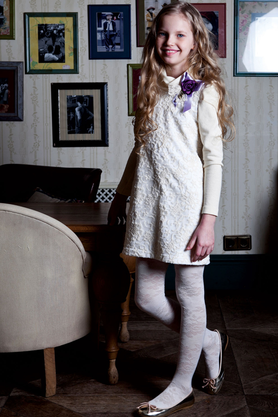 Платье кремовое трикотажное с вышитой сеткой и брошью роза р. 158 см. 1 491,00 1,000