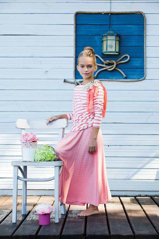 Юбка длинная из трикотажа нежно кораллового цвета в горошек р. 116 см. 1 104,00 10,000