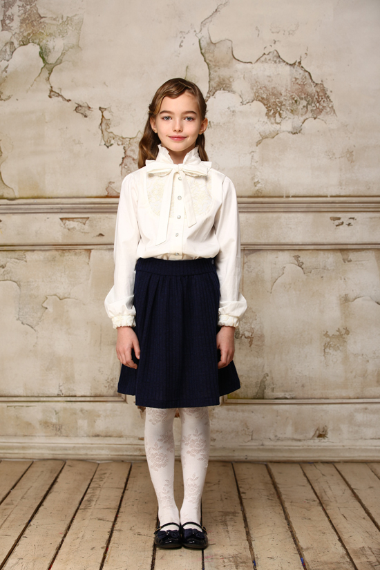 13.1314.2 Юбка из темно-синего трикотажа с декоративным поясом и бантом р. 104 см. 850,00