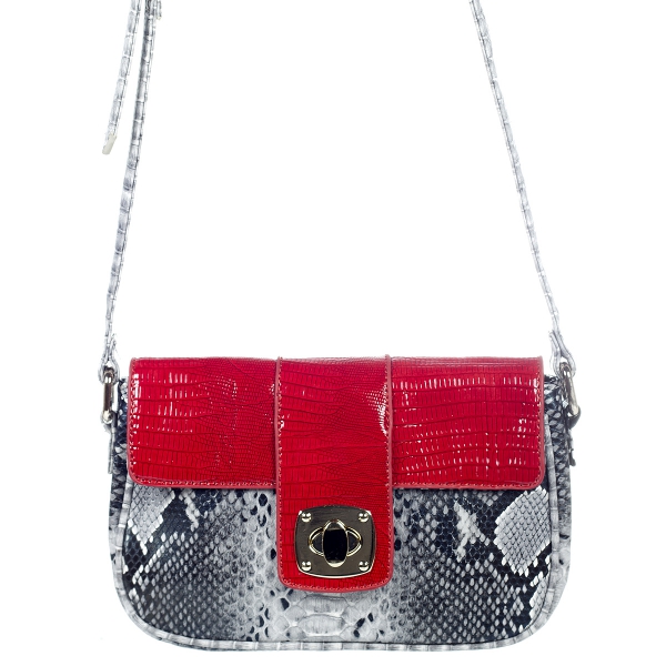 Такой аксессуар сразу обратит на себя внимание окружающих – имитация крокодиловой кожи, и классическое сочетание сочного алого, чёрного и серого цветов.
