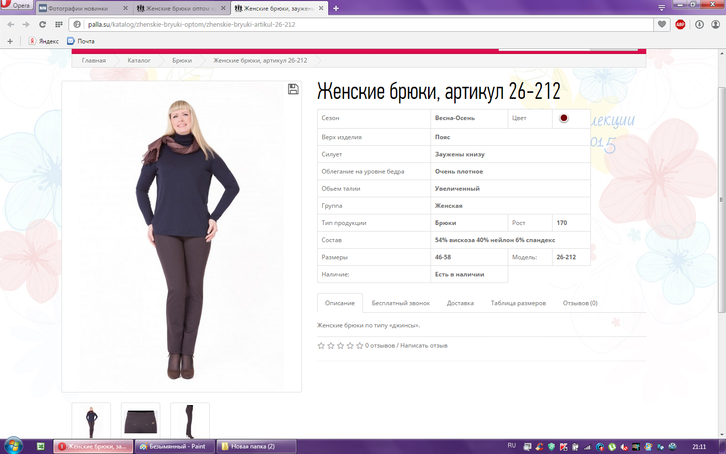 Брюки женские арт.26-212 58-170 1 040,00 46,000