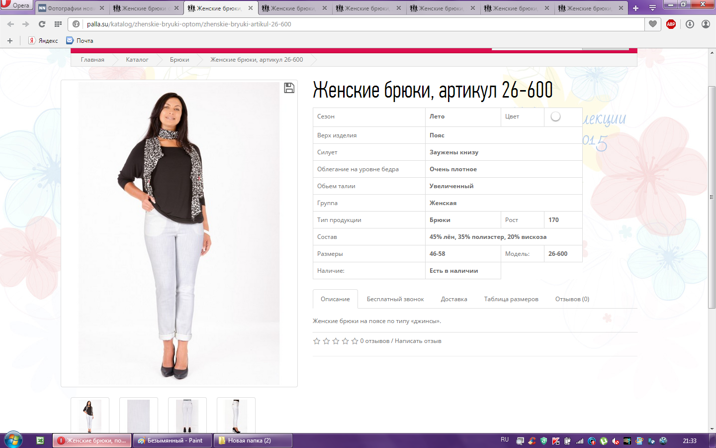 Брюки женские арт.26-600 56-170 890,00 42,000