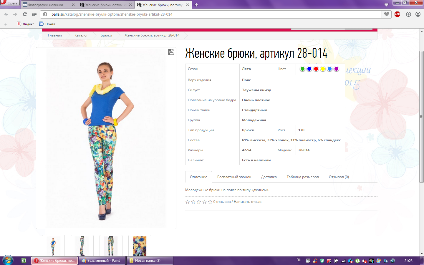 Брюки женские арт.28-014 46-170 990,00 6,000