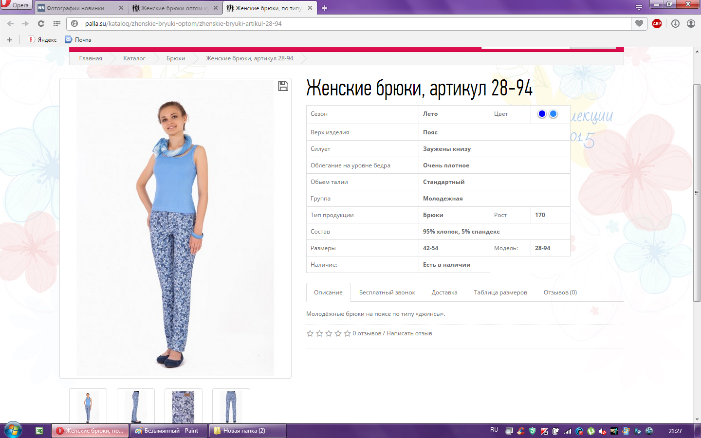 Брюки женские арт.28-94 54-170 1 000,00 28,000