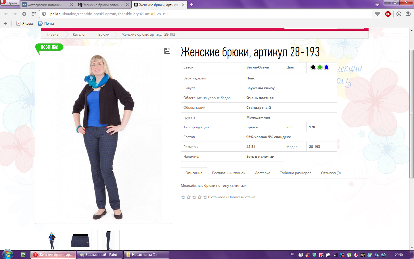 Брюки женские арт.28-193 46-170 990,00 147,000