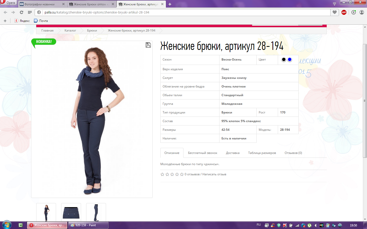 Брюки женские арт.28-194 46-170 990,00 119,000
