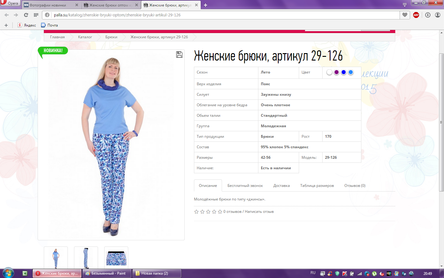 Брюки женские арт.29-126 48-170 950,00 119,000