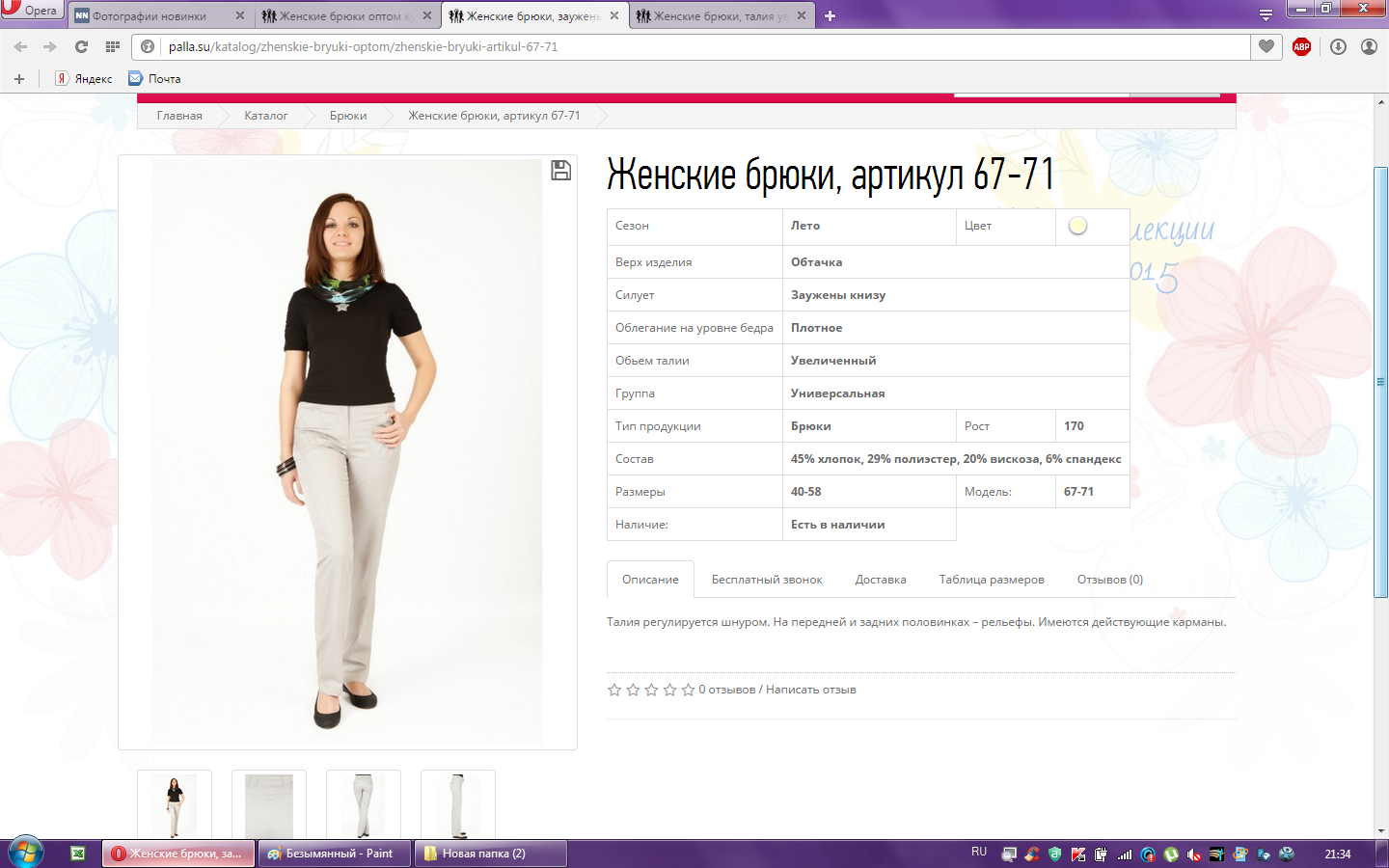 Брюки женские арт.67-71 50-170 900,00 48,000