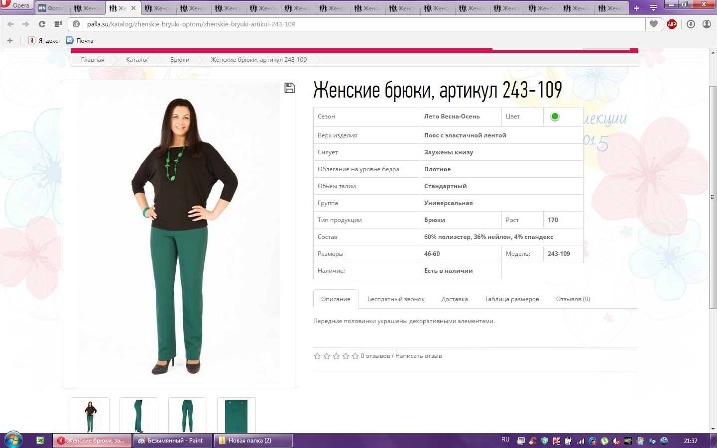 Брюки женские арт.243-109 52-170 800,00 148,000