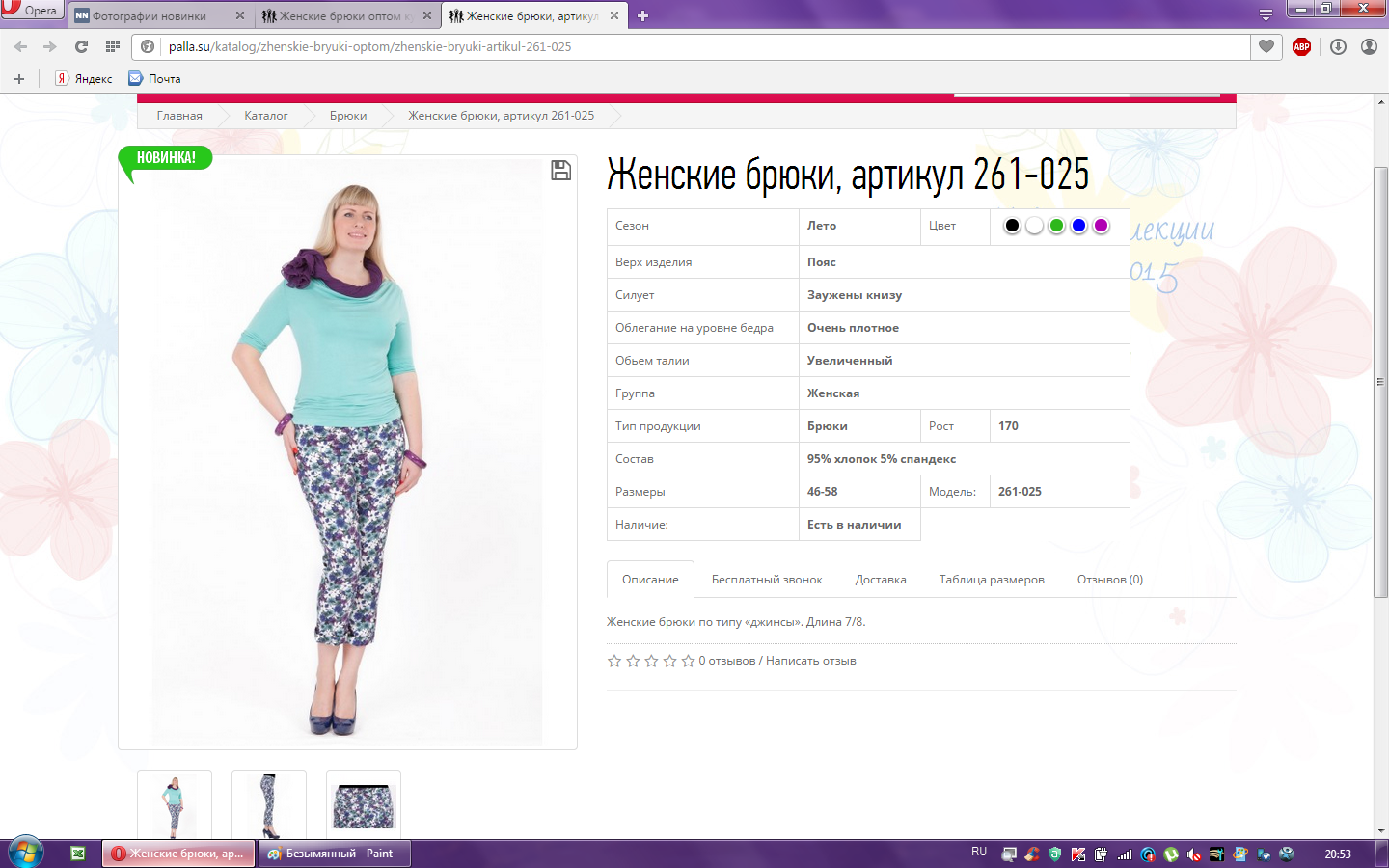 Брюки женские арт.261-025 50-170 920,00 111,000