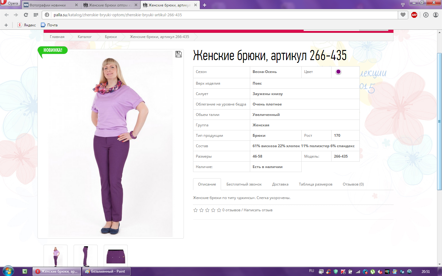 Брюки женские арт.266-435 48-170 1 040,00 48,000