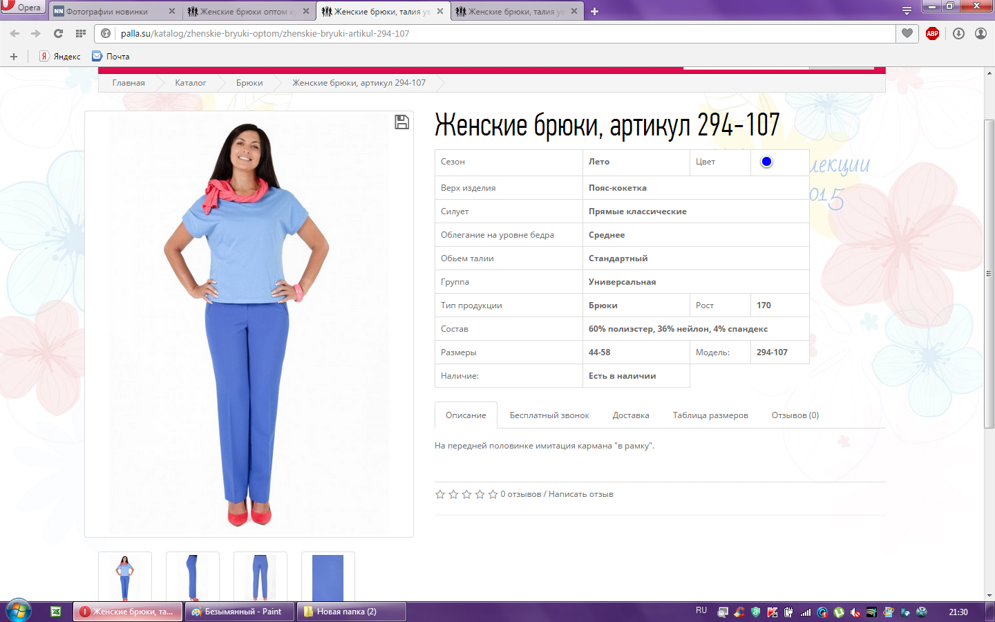 Брюки женские арт. 294-107 50-170 750,00 3,000
