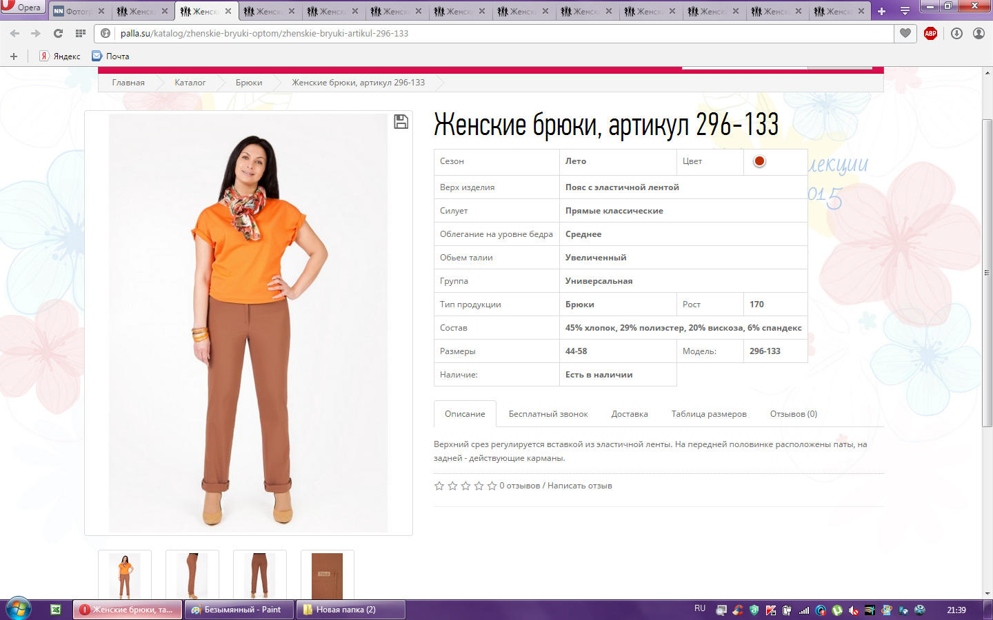 Брюки женские арт.296-133 48-170 810,00 101,000