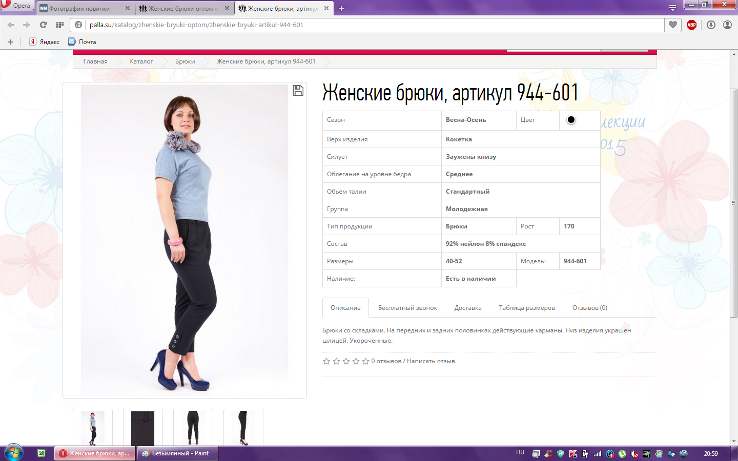 Брюки женские арт.944-601 46-170 1 150,00 61,000