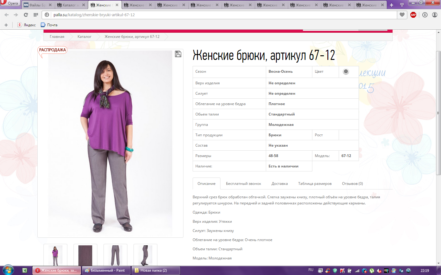 Брюки женские арт.67-12 50-170 300,00 17,000
