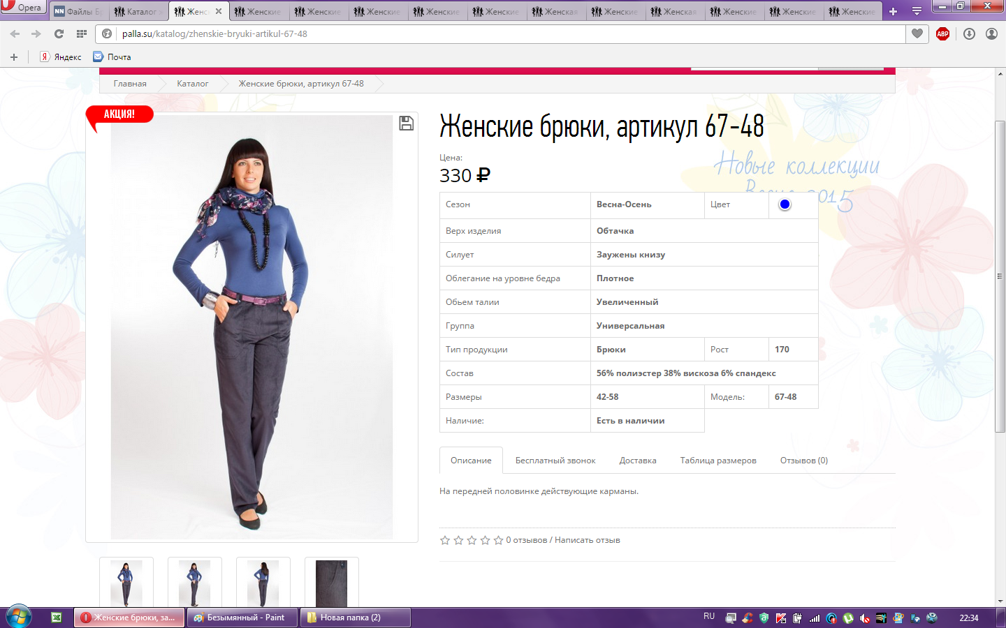 Брюки женские арт.67-48 44-170 380,00 4,000