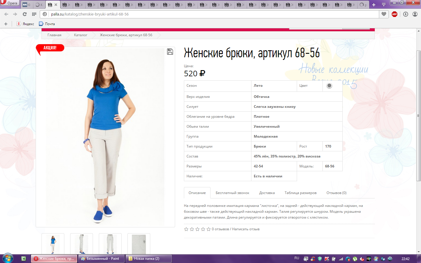 Брюки женские арт.68-56 48-170 570,00 88,000