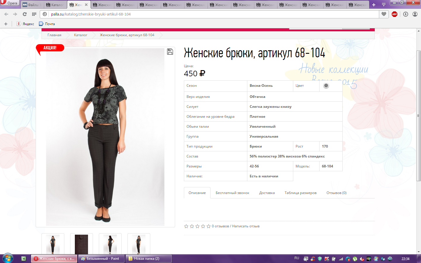 Брюки женские арт.68-104 50-170 500,00 33,000