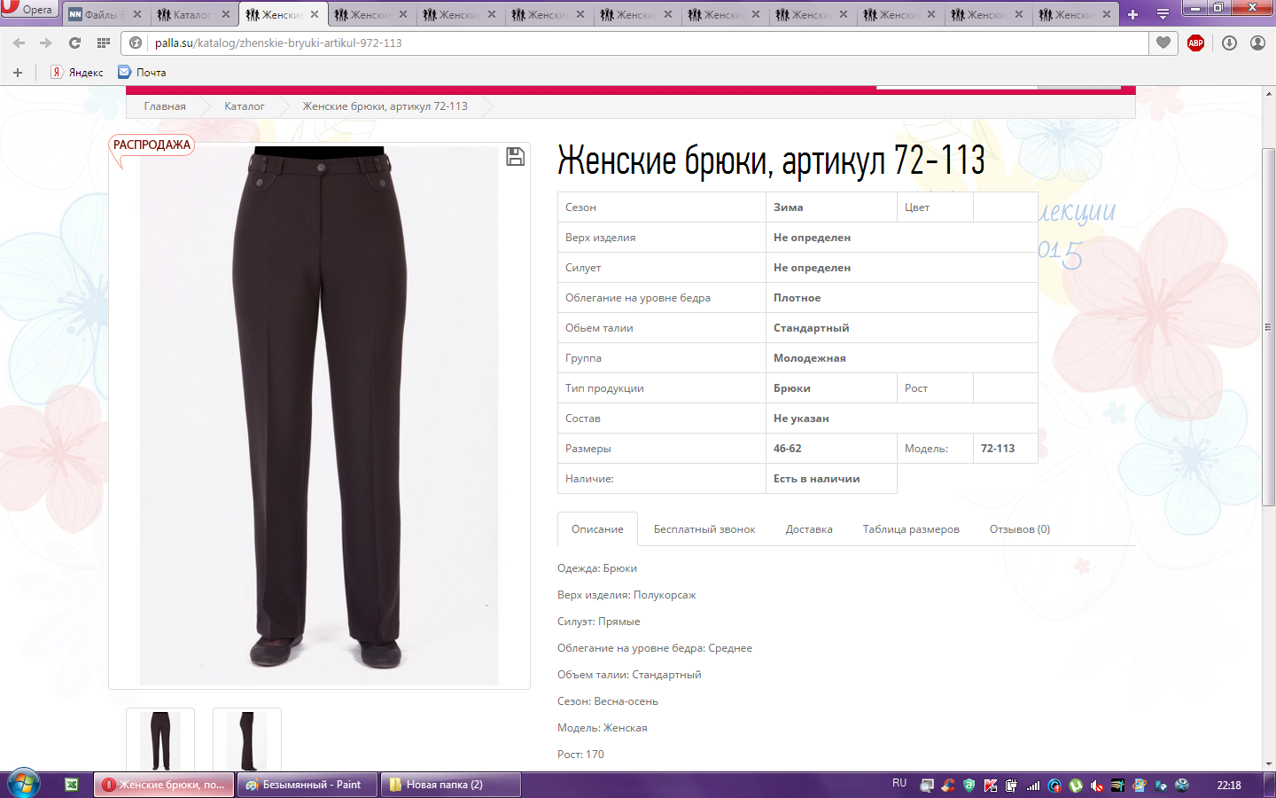 Брюки женские арт.72-113 48-170 350,00 2,000