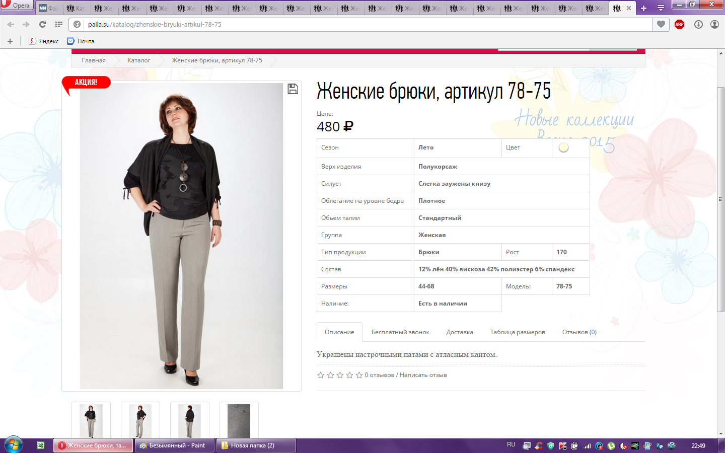 Брюки женские арт.78-75-0 60-170 550,00 37,000