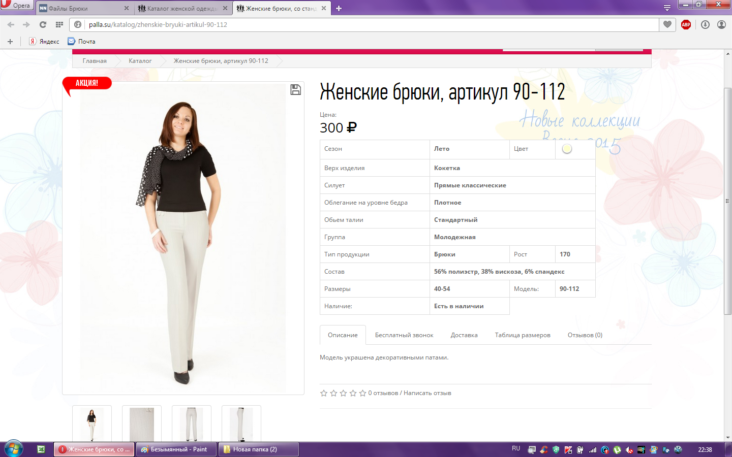 Брюки женские арт.90-112 44-170 350,00 6,000