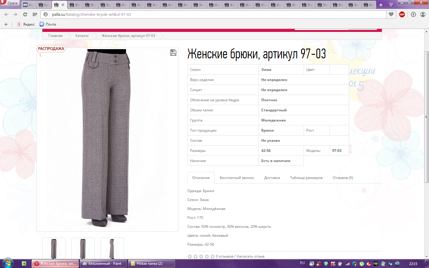 Брюки женские арт.97-03 42-170 200,00 4,000