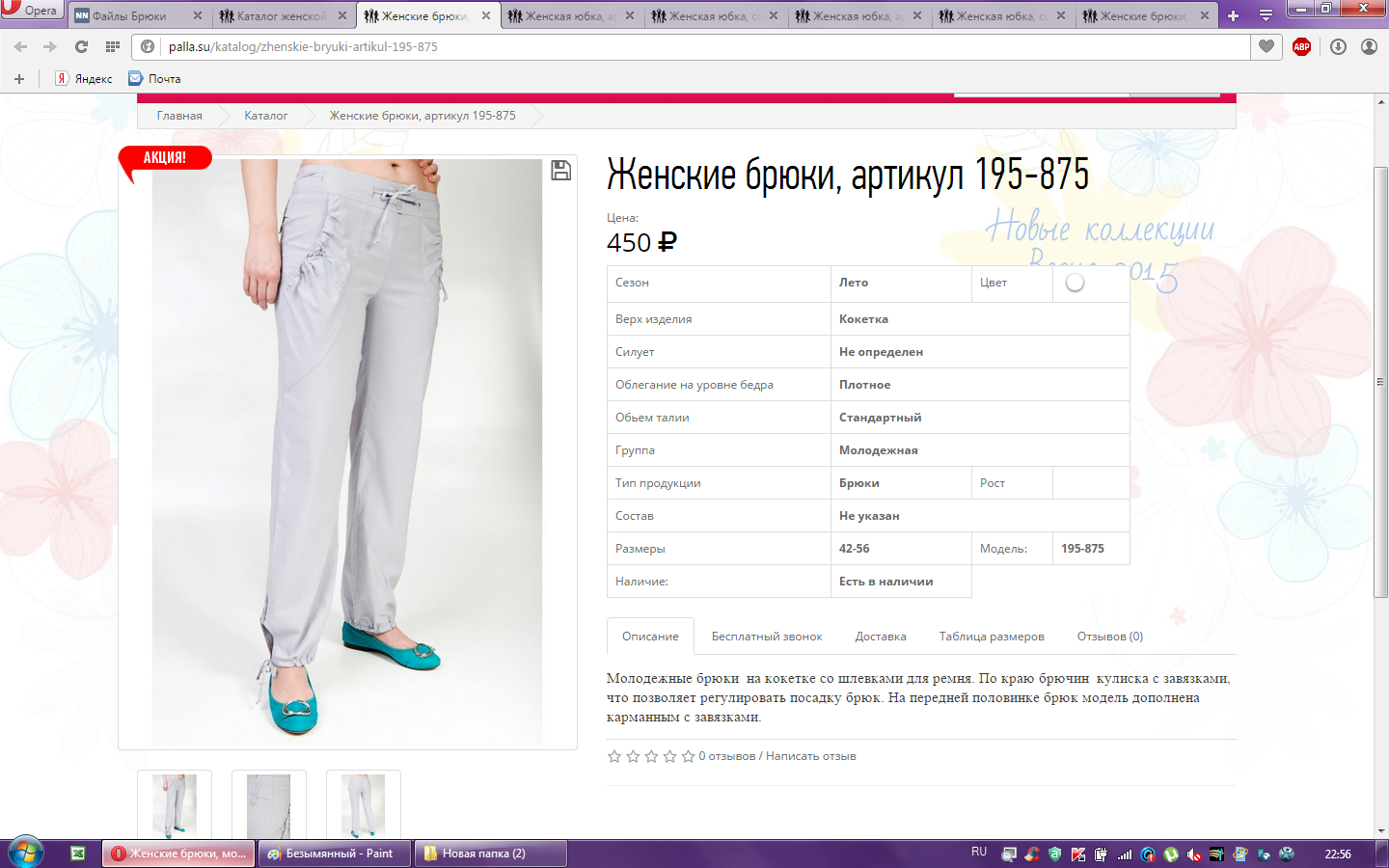 Брюки женские арт.195-875 56-170 500,00 12,000