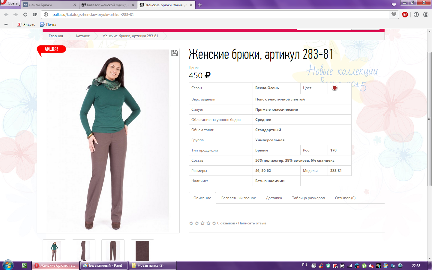 Брюки женские арт.283-81 56-170 500,00 11,000