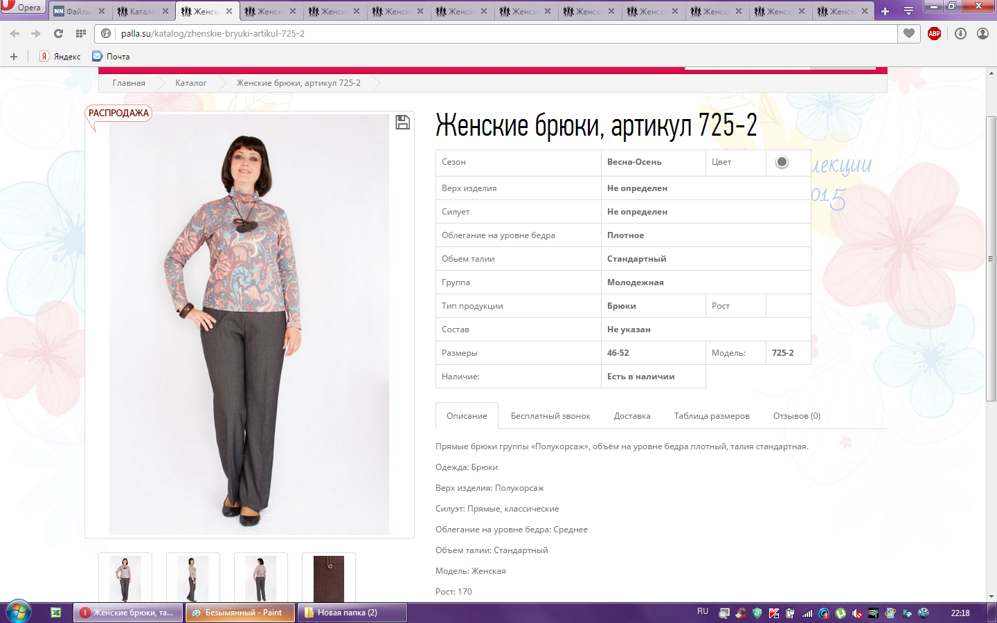 Брюки женские арт.725-2 48-170 300,00 1,000