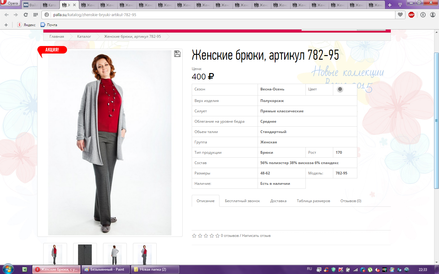 Брюки женские арт.782-95 52-170 450,00 89,000