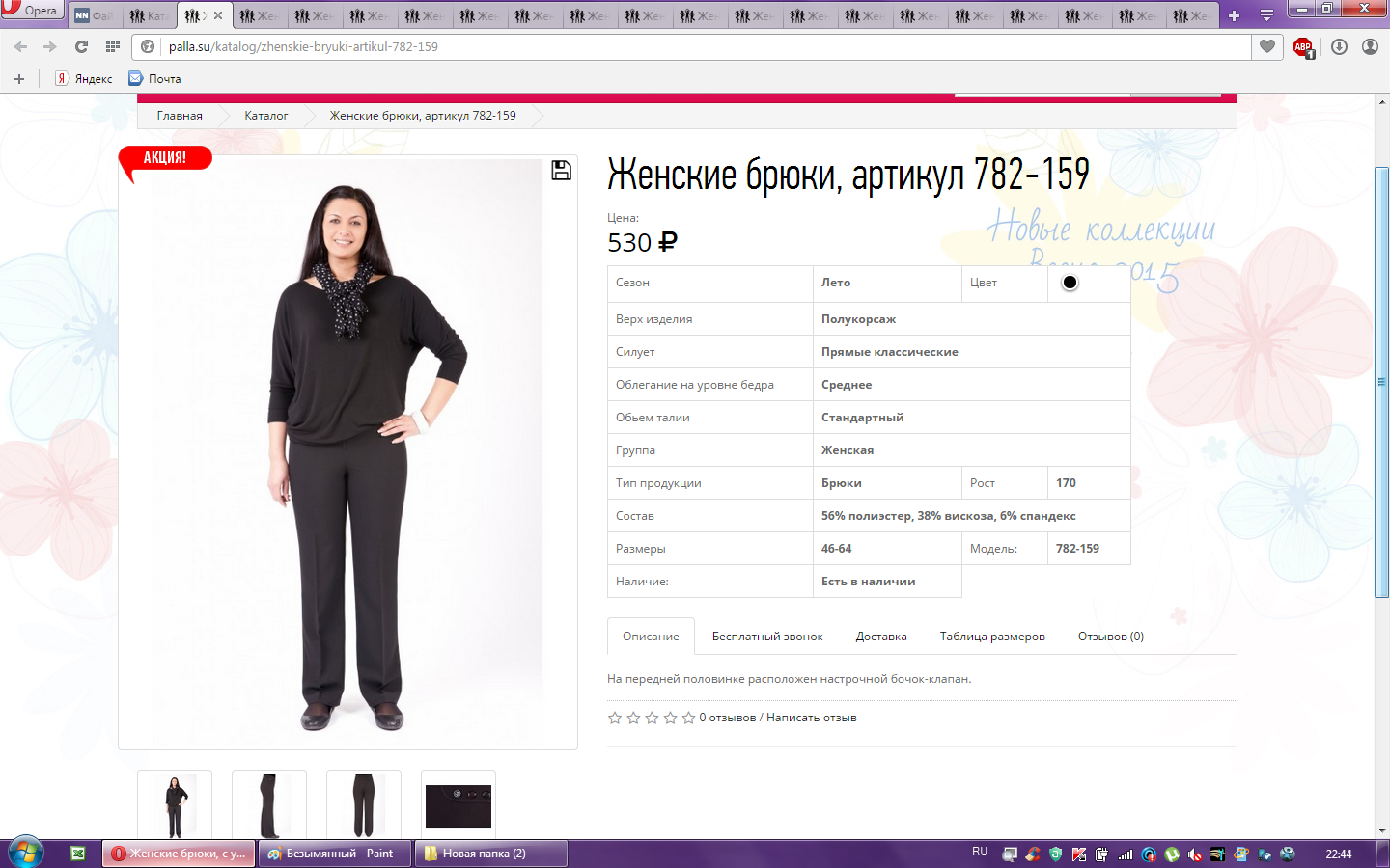 Брюки женские арт.782-159 56-170 580,00 3,000