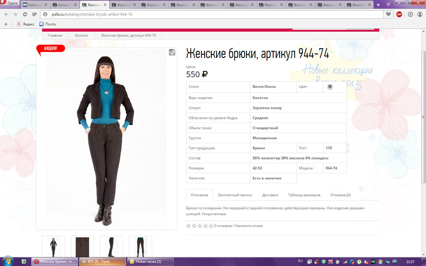 Брюки женские арт.944-74 46-170 600,00 18,000