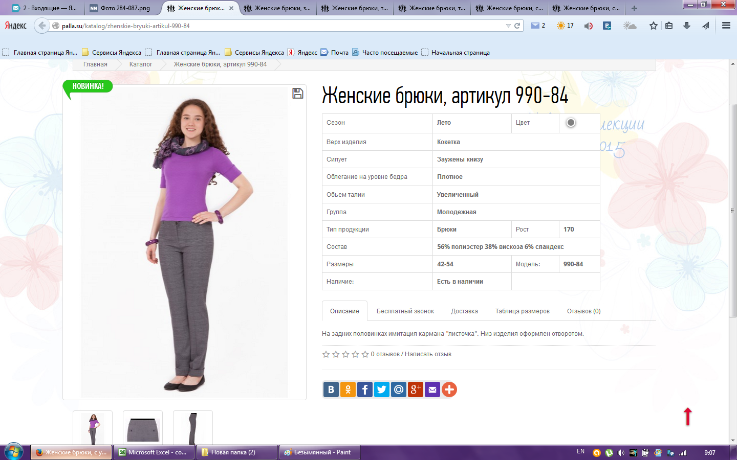 Брюки женские арт.990-84 46-170 650,00 1,000