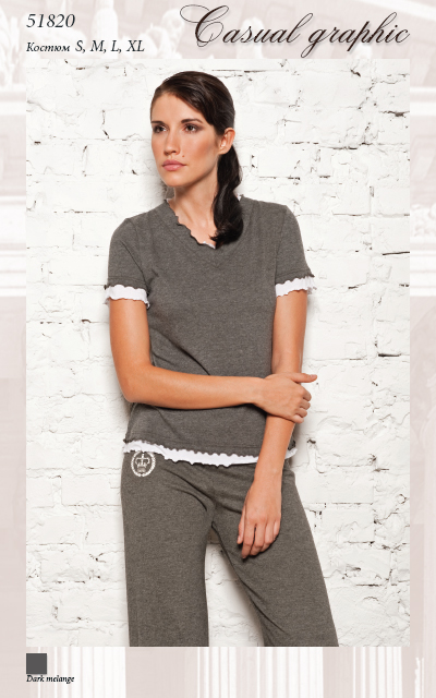 51820 Пижама женская XL (52) светло-серый 000, шт