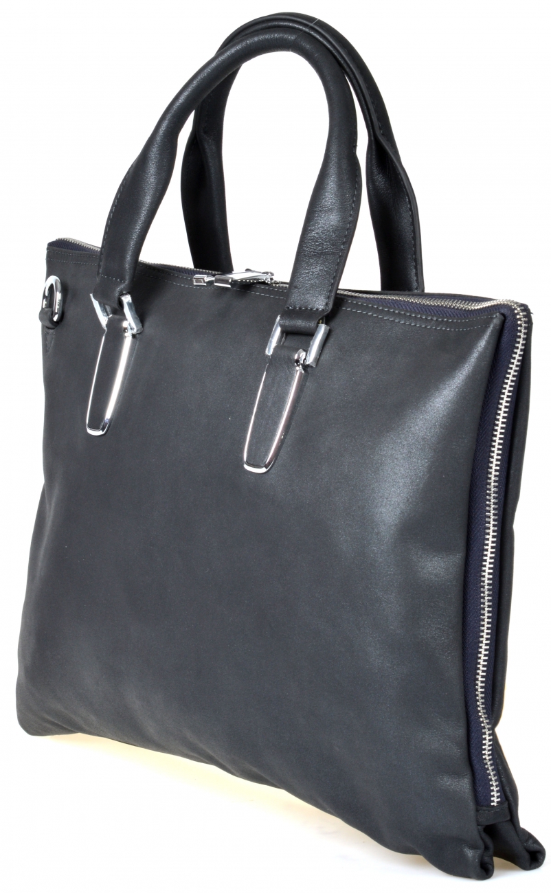Под натуральной кожей скрывается хлопковая прокладка. Вместительное внутреннее отделение на молнии, имеется два больших кармана один из которых на молнии. В сумку с легкостью вместится парка с документами формата A4.