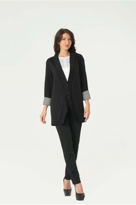 Кардиган женский черный с манжетами в узкую белую полоску 48, 54 3