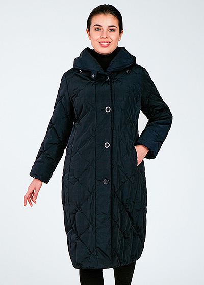 Такую модель совершенно невозможно назвать пуховиком, несмотря на водоотталкивающую ткань, легкий утеплитель полифилл и капюшон с дополнительной застежкой. Это самое настоящее пальто прямого кроя длиной на ладонь ниже колена отлично смотрится на любой фигуре. Вертикальная декоративная стежка ромбами и передняя планка с крупными пуговицами визуально делают силуэт стройнее, а классическое однотонное окрашивание