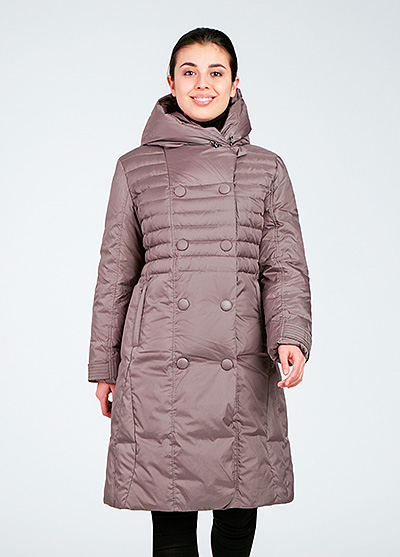 Теплая одежда зимой это необходимость и финские женские пуховики отвечают этому качеству в полной мере. Однако данная модель не только очень теплая: длинные рукава с отворотами, капюшон, утеплитель – гусиный пух, но и женственная. Длина до колена и специфические декоративные строчки в верхней части пуховика создают изящный стройный силуэт, а два ряда кнопок и расширяющийся подол делают его похожим на классическое пальто.
