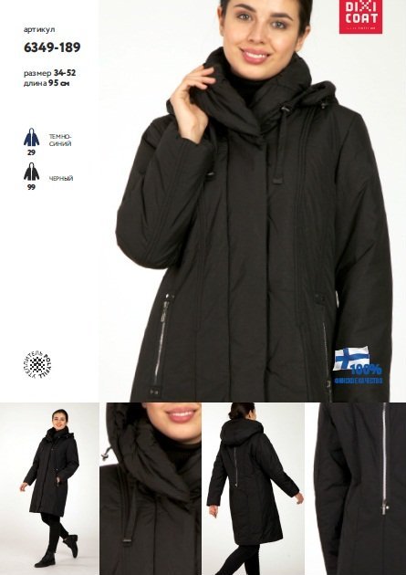 Модель подойдет для ежедневного ношения женщинам, предпочитающим лаконично скроенную одежду немарких цветов. Она сшита из водонепроницаемой ткани темно-синего или черного цвета, утеплена полифиллом. Основная застежка скрыта за ветрозащитной планкой, капюшон отстегивается. Единственные функционально-декоративные детали, привлекающие взгляд - металлические застежки-молнии на карманах и спине.