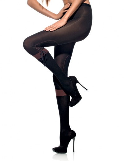 Ультрамодные колготки с эффектной имитацией бриджей и стильными бантами из узкой, фактурной, шёлковой ленты. Классическая посадка, комфортный, логотипированный пояс, хлопчатобумажная ластовица, плоские швы.