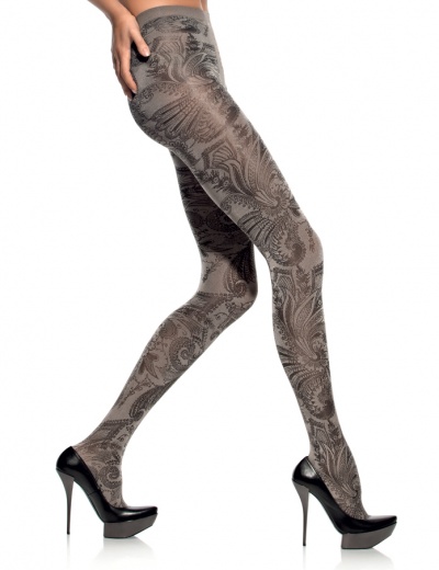 Великолепные колготки с эффектом сияния благородного шёлка и оригинальным гобеленовым рисунком в восточном стиле. Классическая посадка, комфортный пояс, плоские швы.