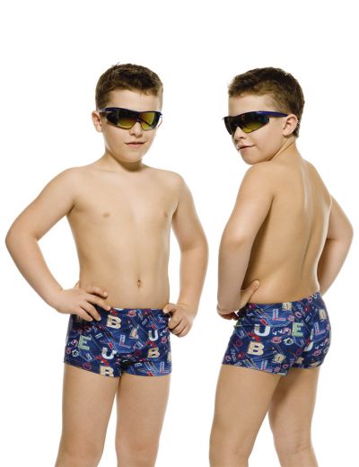Классические плавки - шорты для мальчиков младшего возраста комфортной посадки. Шнурок по талии потайного типа для лучшей фиксации на фигуре. Шорты выполнены в стиле "Мультколористика" с ярким принтом "Джинсовый микс".