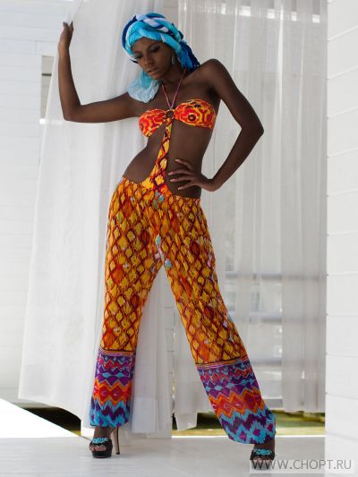 Новинка сезона! Экстравагантные шальвары свободного кроя из мягкой эластичной сетки. Модель выполнена в стиле поместного расположения рисунка, в модном национальном стиле. Отличное аксессуарное предложение для пляжного отдыха.